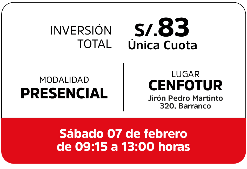 Los participantes recibirán una constancia de participación a nombre del Centro de Formación en Turismo – CENFOTUR.