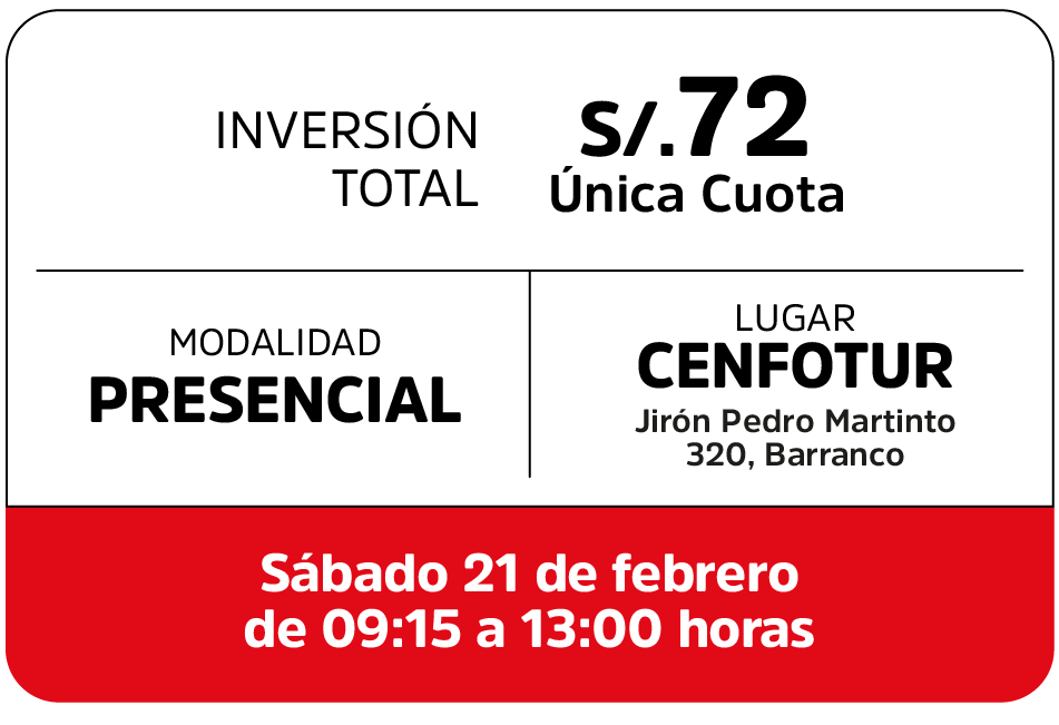 Los participantes recibirán una constancia de participación a nombre del Centro de Formación en Turismo – CENFOTUR.