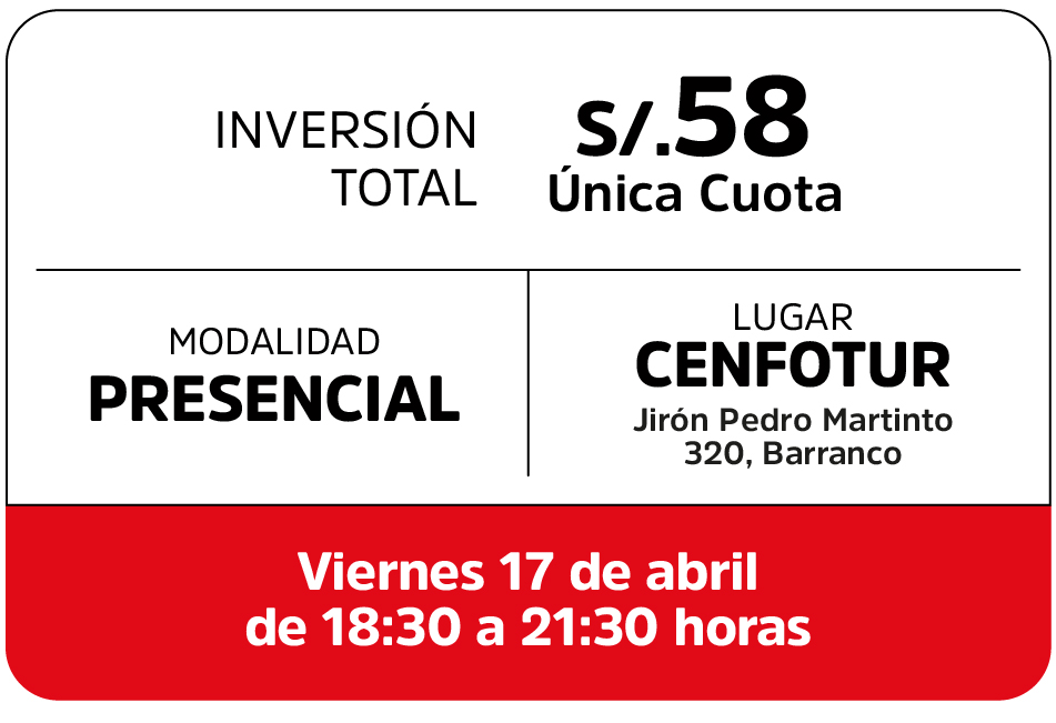 Los participantes recibirán una constancia de participación a nombre del Centro de Formación en Turismo – CENFOTUR.