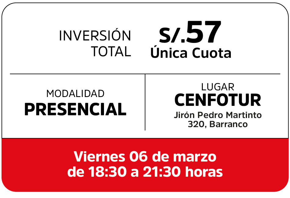El CENFOTUR podrá efectuar cambios en la malla, cursos o profesores, de acuerdo a su política de mejora continua. De no cumplir con el mínimo de estudiantes requeridos, el CENFOTUR se reserva el derecho de postergar los inicios de los cursos y programas.